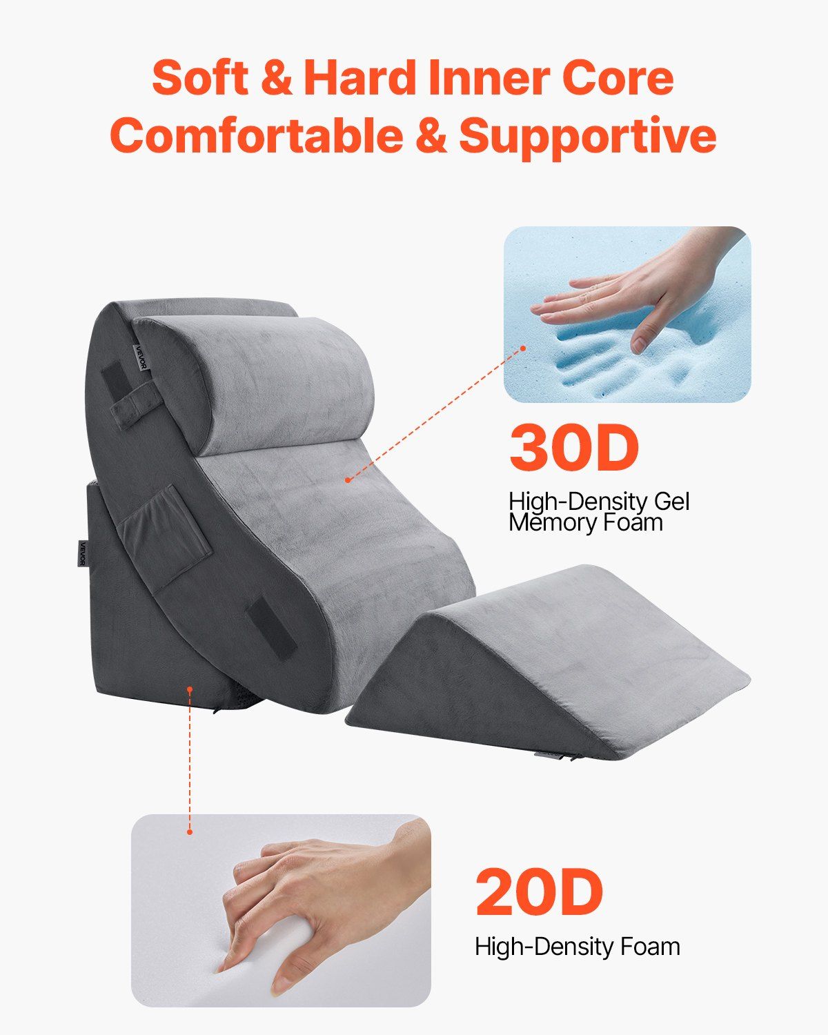 Made with high-density foam, slow-rebound gel memory foam, and a soft, breathable, washable cover, this headboard wedge pillow ensures better comfort and security.